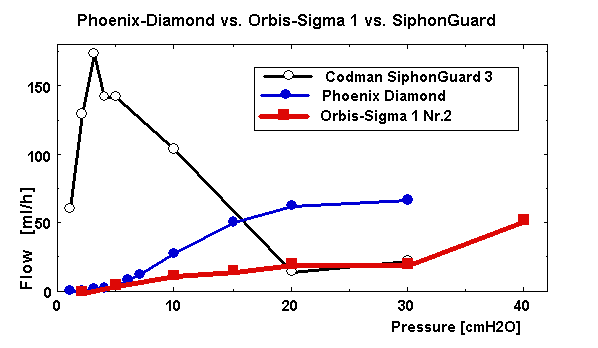 Phoenix-Diamond and Codman Siphon Guard 3 compared to the flow of a previously