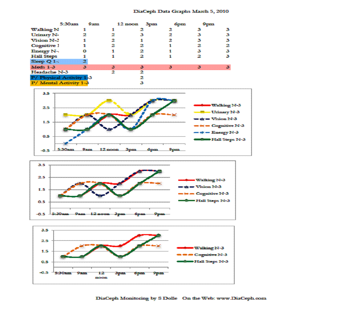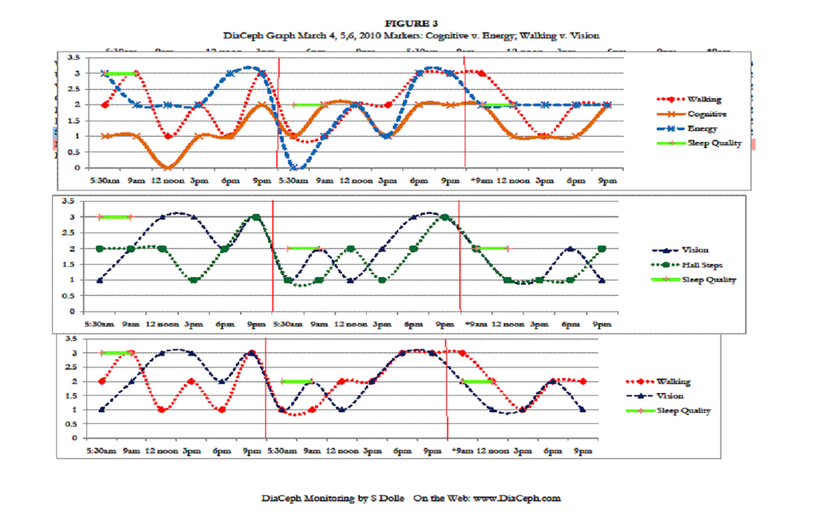 Attached, are DiaCeph/Excel Data Graphs from March 4, 2010 to March 15, 2010, and Comparison Graphs of March 4-6 as Figures 1-4: